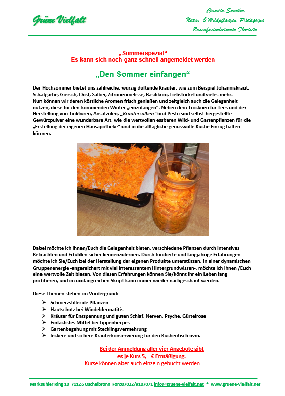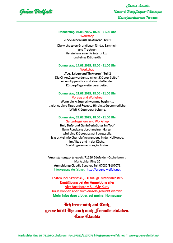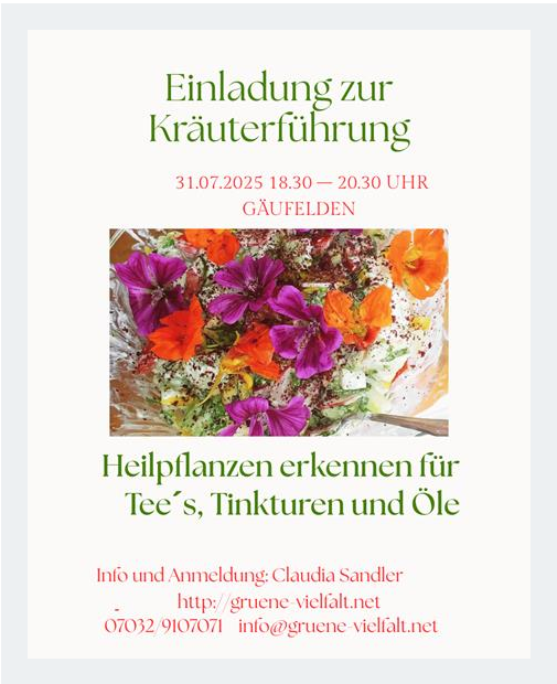 Und wer schon das Kräuterjahr 2021 planen möchte – auf meiner Homepage werden gerade die ersten Termine eingestellt. gruene-vielfalt.net/termine